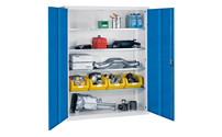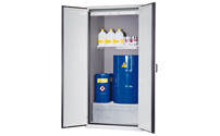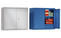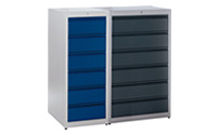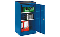 For workshops and warehouses, steel cupboards enable the secure storage of a wide range of contents. The compartments can be configured in such a way, that the cupboard meets the individual requirements of an employee. To ensure hazardous items are stored in compliance with regulations, here you will find suitable hazardous goods storage cupboards to select from if necessary. These can also be equipped with vision panels or their own ventilation system. Cooling systems are available to keep the interior of the cupboard at the right storage temperature if required. In addition to these types of special cupboards, there is a sufficient selection to choose from for the respective application. Pull-out box cupboards provide a good overview, even for larger quantities of small parts to be stored. Employee rooms, recreation centres and public buildings such as schools, libraries or universities can be furnished with lockers and clothes lockers. Wardrobe systems even have necessary accessories such as clothes rails, hat shelves or coat hangers. For optimum order and a clear overview in your company, you will find cupboards in the large online selection in variable sizes and practical cupboard systems, which serve multiple functions at once.