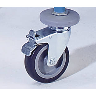 4 swivel castors, 2 with double stops, roller bearings, non-marking solid rubber tyres.